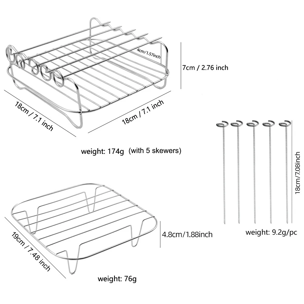 silicone air fryer liner with Bbq Grill rack Air Fryer Accessory Stainless steel Air Fryer Rack With Skewer