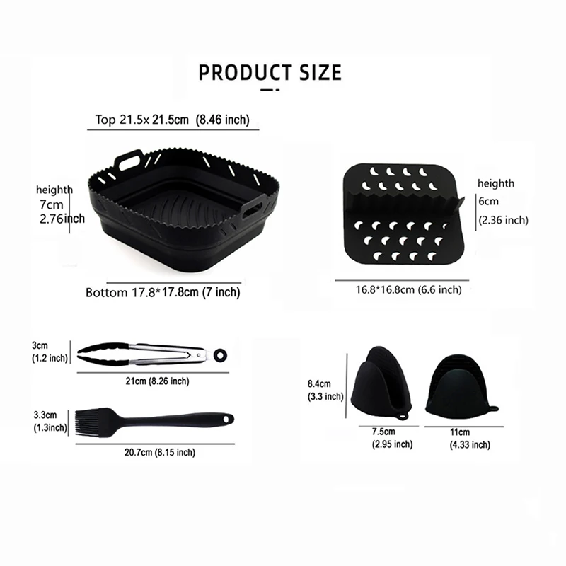 Silicone Air Fryer Liner with Bbq Grill Rack Air Fryer Accessory Stainless Steel Air Fryer Rack with Skewer