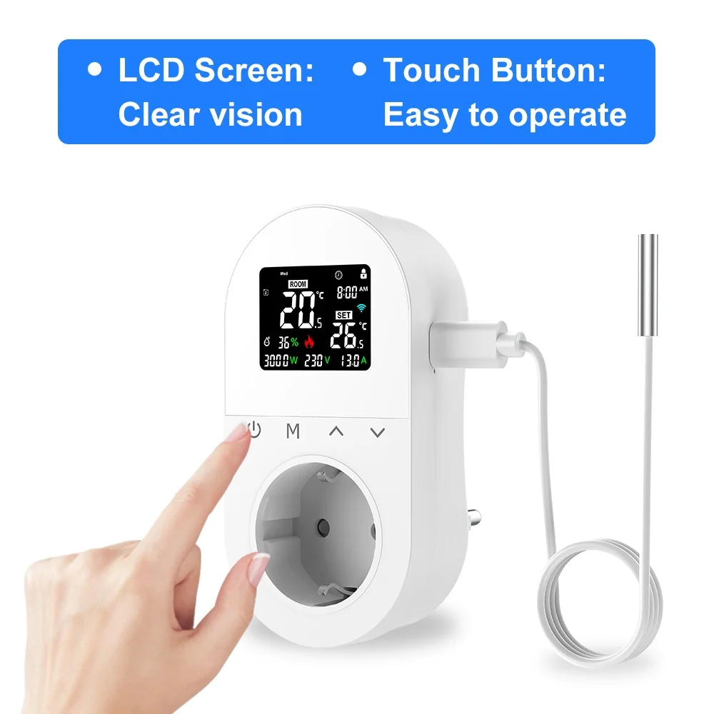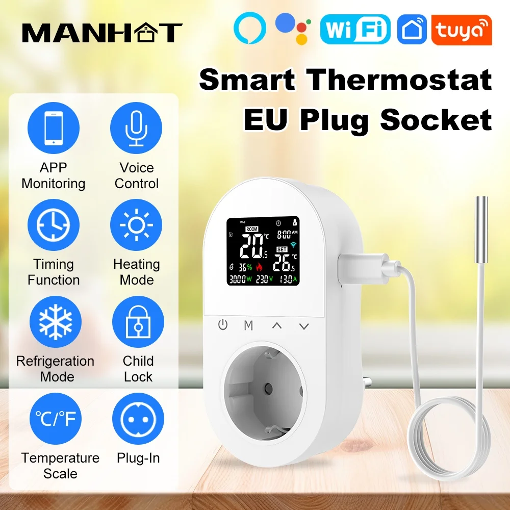 Smart Wifi Digital Thermostat Socket 16A EU Plug App Remote Temperature Heating Cooling Control for Google Home Alexa Tuya