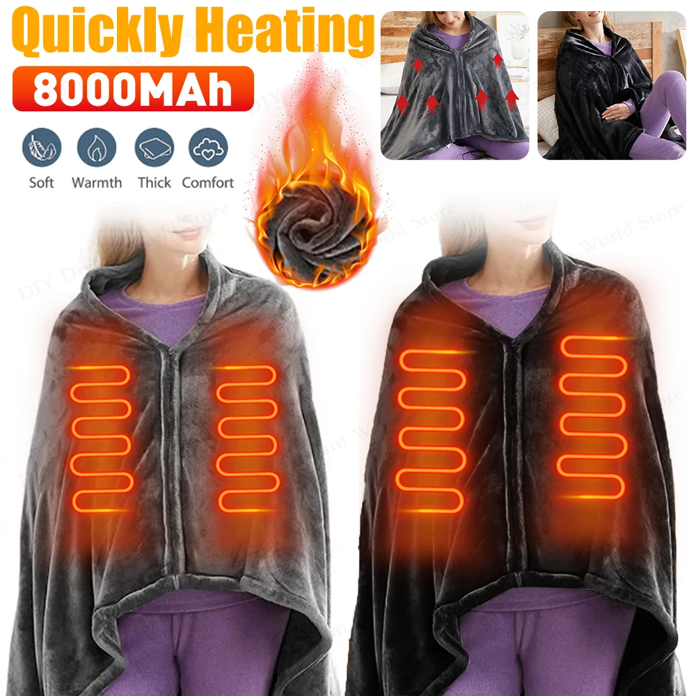 USB Heated Shawl Electric Heating Blanket 3 Heating Level Wearable Heated Poncho Throw Soft Heated Throw Blanket for Home Office