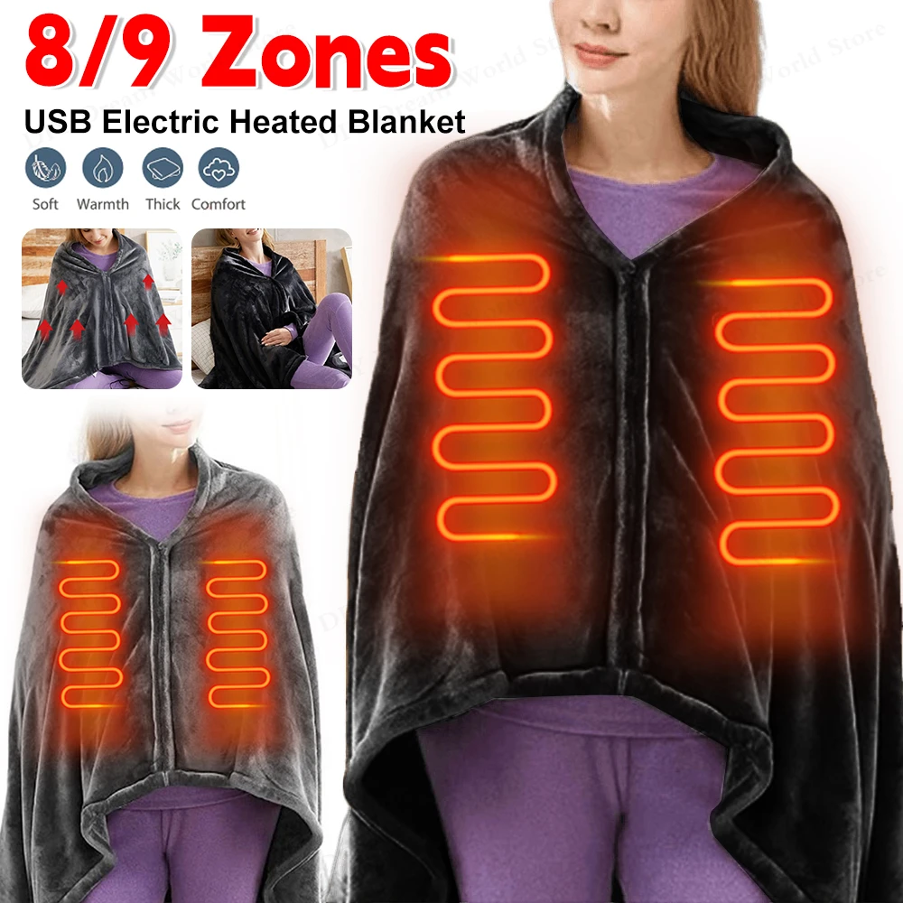 USB Electric Blanket 3 Heating Levels Heated Shawl Winter Throw Pad Coral Velvet 9 Heated Areas for Home Office Outdoor